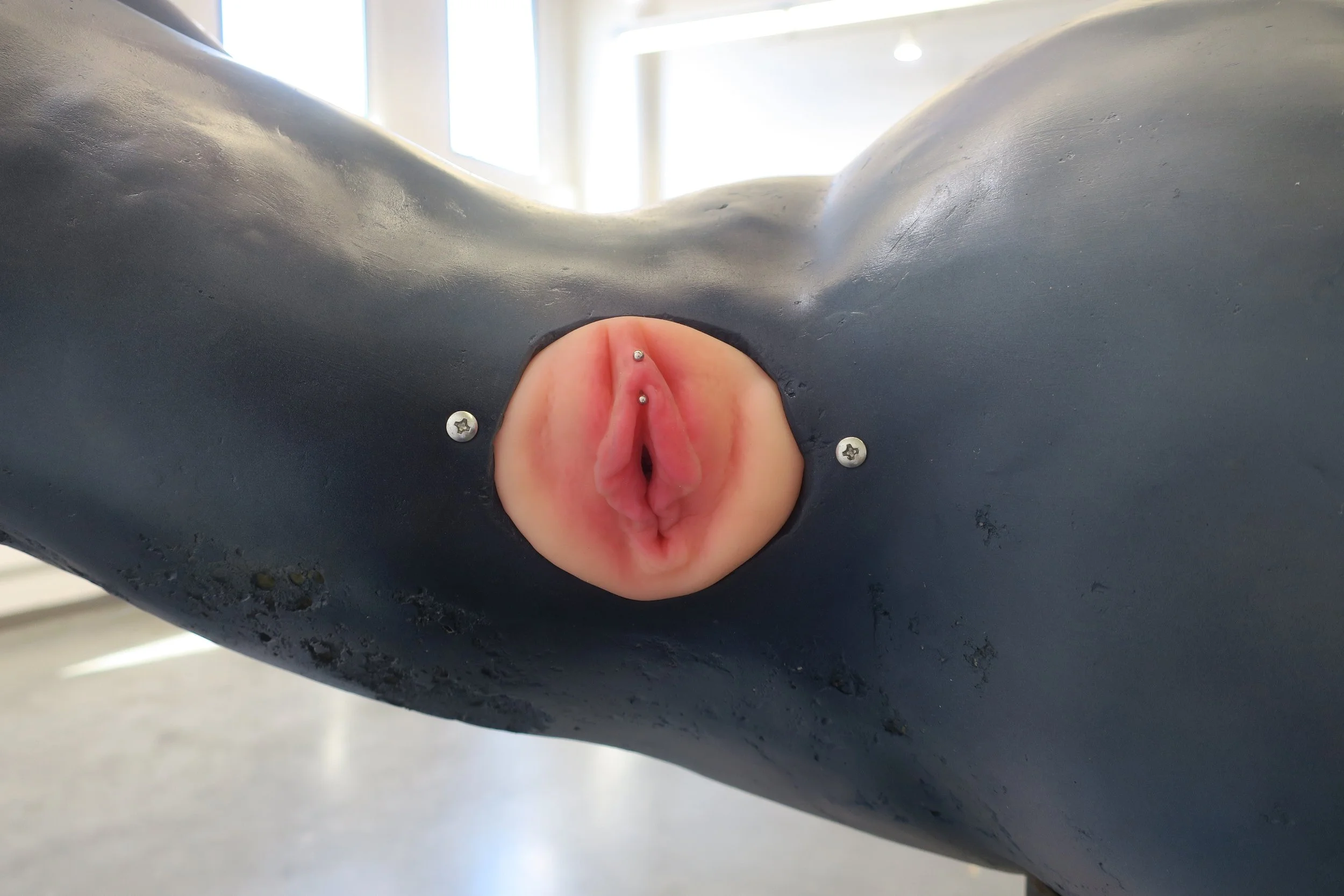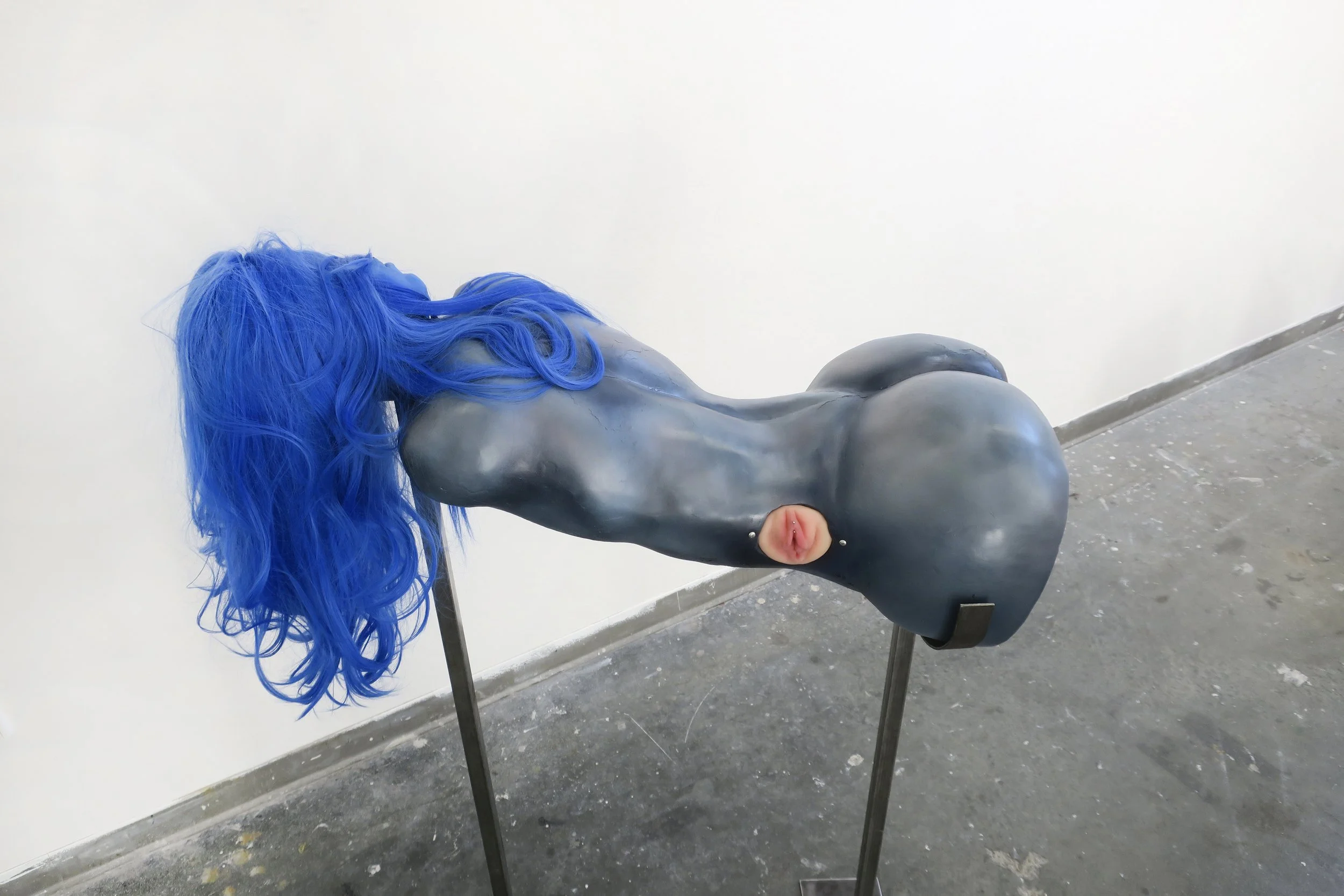 Polyester resin, foam, wire, silicone, acrylic paint, polyurethane, synthetic hair, and steel.